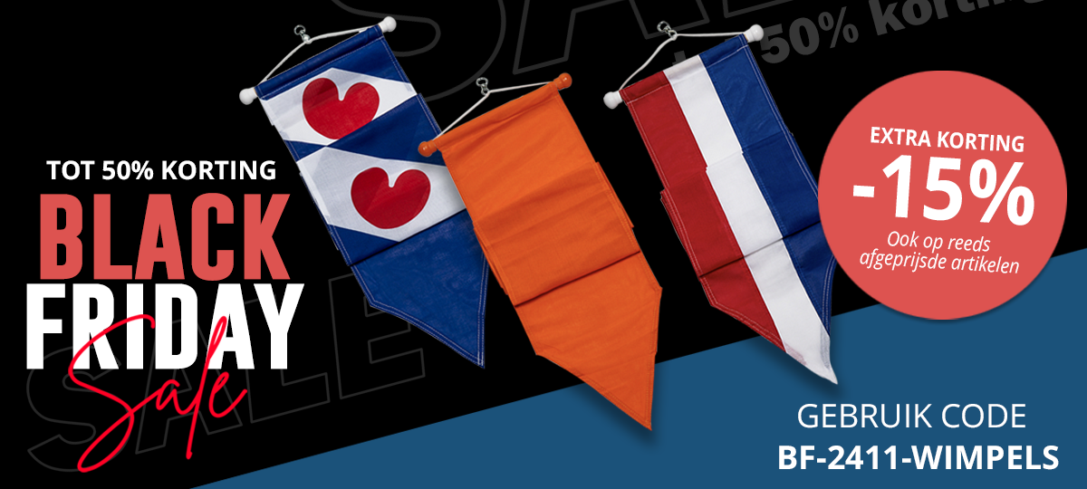 Ontvang alléén vandaag 15% korting op wimpels.