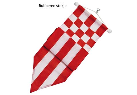 De wimpel van Brabant is verkrijgbaar in 3 verschillende lengtematen, variërend van 2 t/m 4 meter. Deze wimpel heeft bovenin het kenmerkende rood-witte blokkenpatroon. Naar beneden toe heeft de wimpel rood met witte banen.